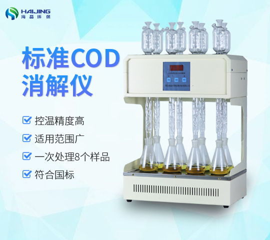 在國家標準制定之初,COD消解裝置主要是由24磨口錐形瓶、30~50cm的回流冷凝管、加熱裝置組成的。接通冷凝水之后,加熱回流兩個小時消解完成。此方法費時、費水、耗人工,而且一次只能消解一個水樣,對每天進行多次試驗的工作人員來說,非常好費時間。后來,新出的COD標準消解器在以上的幾個方面進行了改良:采用專用的石棉加熱板代替酒精燈(加熱套)進行加熱,加熱板面積增大,可以放置5-6個錐形瓶,一次性處理消解6個水樣,而且,加熱溫度恒定控制在165℃,冷凝管配備專用的風扇冷凝,中間還可以加水加速冷凝,此儀器(HJ-101C型COD消解器)大大解決了工作人員的煩惱,方便快捷,在上市之初就迅速收到客戶的歡迎,銷量可觀。后來,部分客戶(例如:第三方檢測)在日常工作中每天要檢測的水樣是非常多的,因此,我們又推出了8孔、12孔的消解器,及時滿足用戶需求。客戶反應良好,極大的增加了我們堅定的信心。現目前,我公司還在不斷的推出新的產品以滿足市場所需,新出的HJ-101型COD恒溫加熱器不但具備以上優點,而且可以定時消解、報警處理、溫度均勻,大大增加了實驗的安全性、方便性,受到用戶的良好反饋。