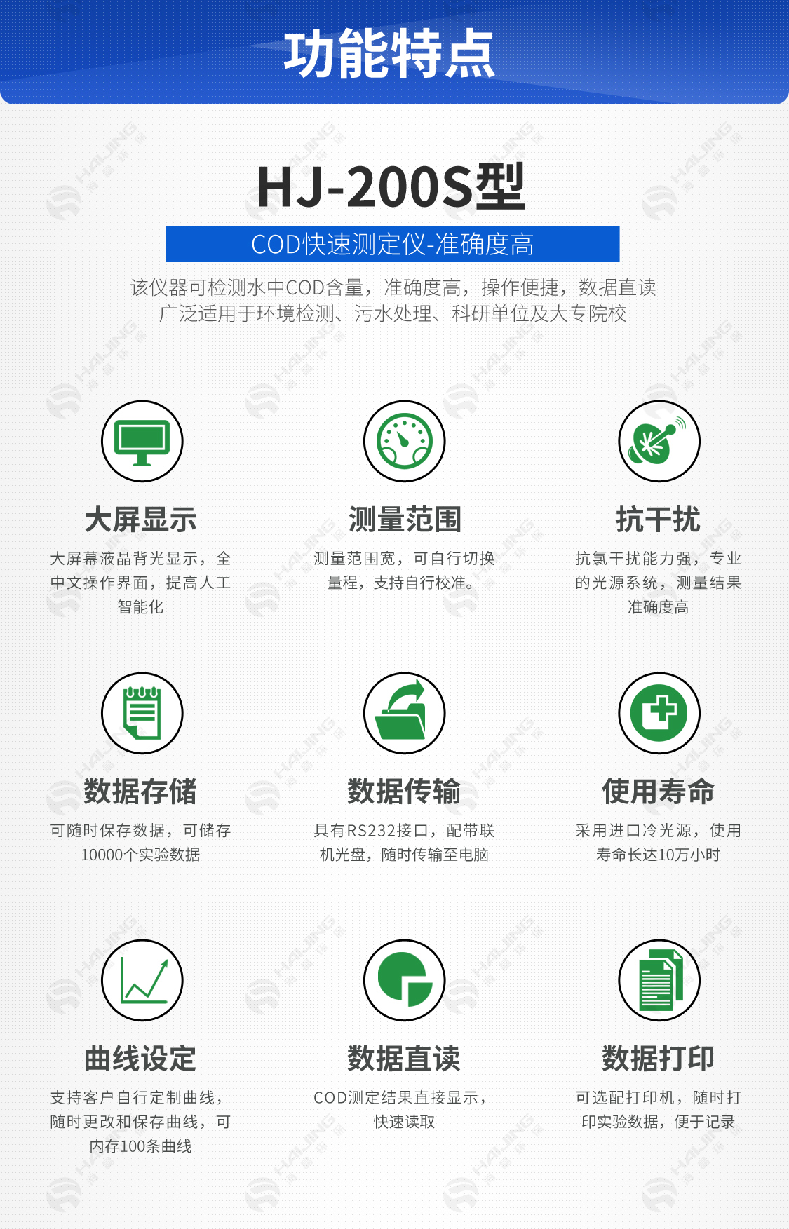 COD≤100mg/L,誤差≤±5mg/l