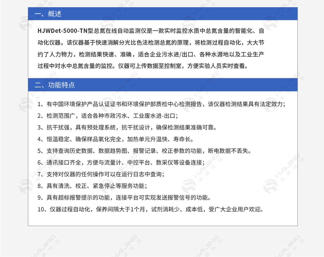 HJWDet-5000-TN在線分析儀 廣泛地使用于 環(huán)保污染源監(jiān)測、工業(yè)過程用水監(jiān)測、市政污水處理。