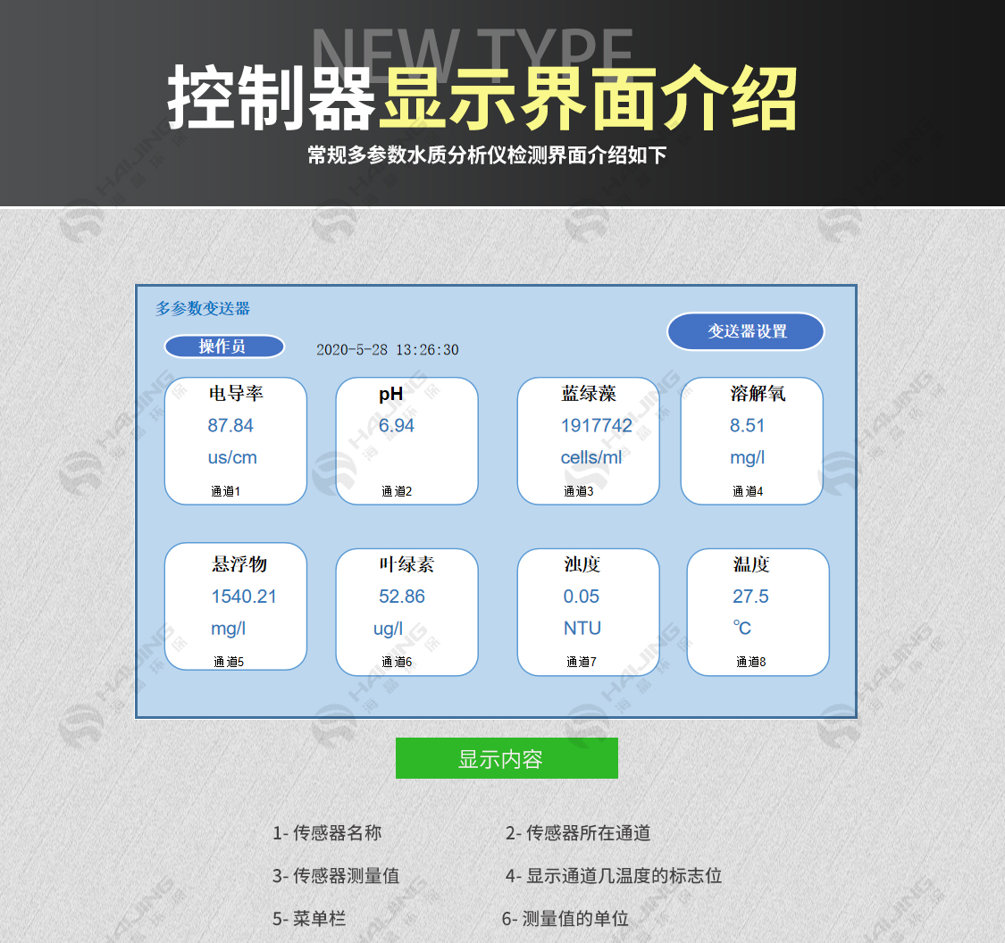 | 產(chǎn)品特點(diǎn): | 常規(guī)五參數(shù)在線分析儀!一機(jī)多用!可上傳數(shù)據(jù),實(shí)時檢測! HJ-0205型多參數(shù)水質(zhì)分析儀可以根據(jù)客戶不同需求,通過選配傳感器實(shí)現(xiàn)同時在線監(jiān)測多個多種不同參數(shù)值,包括溫度、PH、電導(dǎo)、溶氧、濁度、污泥濃度、葉綠素、藍(lán)綠藻等(參...... |